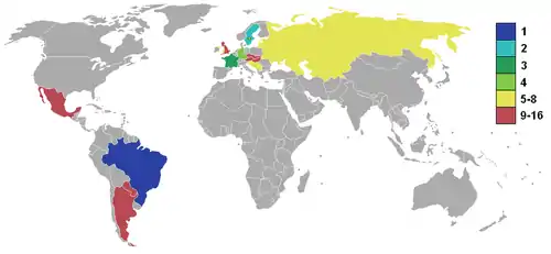 - Африка (КАФ) и Азия (АФК): 1 место, разыгрываемое между 12 странами (в том числе числе Израиль, Кипр и Турция).