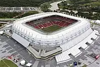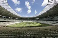 - Обычных мест на стадионе 48 000. На время Чемпионата Мира 2014 на стадионе также будут размещены временные трибуны.