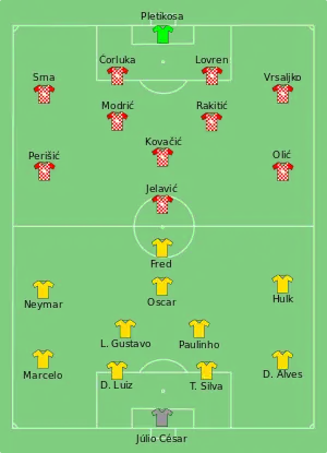 - Match report – Brazil–Croatia (PDF) (недоступная ссылка). FIFA.com (Fédération Internationale de Football Association) (12 June 2014). Дата обращения: 12 июня 2014. Архивировано 14 июля 2014 года.