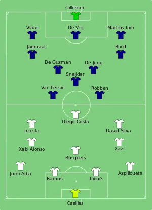 - Spain 1-5 Netherlands – Man of the Match (недоступная ссылка). FIFA.com (Fédération Internationale de Football Association) (13 June 2014). Дата обращения: 13 июня 2014. Архивировано 12 июня 2014 года.