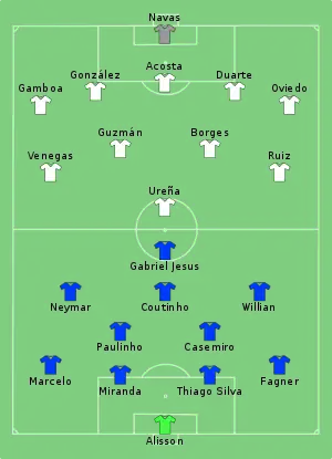 - Tactical Line-up – Group E – Brazil v Costa Rica (PDF). FIFA.com. Fédération Internationale de Football Association (22 June 2018). Дата обращения: 22 июня 2018.