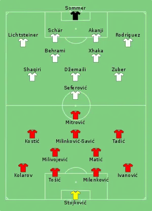 - Tactical Line-up – Group E – Serbia v Switzerland (PDF). FIFA.com. Fédération Internationale de Football Association (22 June 2018). Дата обращения: 22 июня 2018.