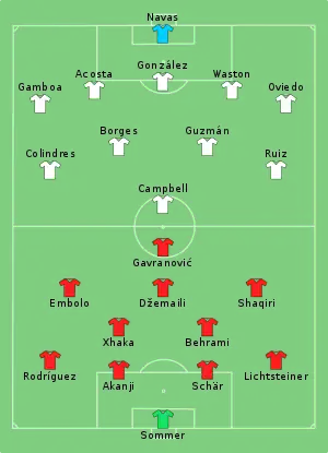- Tactical Line-up – Group E – Switzerland v Costa Rica (англ.). FIFA.com. Fédération Internationale de Football Association (27 июня 2018). Дата обращения: 29 июля 2018.