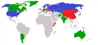 Зелёный цвет: члены Международной федерации хоккея с мячом не участвующие в ЧМ-2016