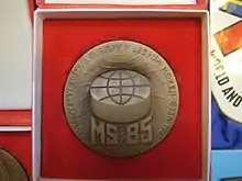 ![]() Золотая медаль, врученная победителю чемпионата мира — сборной Чехословакии |