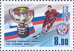 ![]() Марка, посвящённая победе российской сборной |