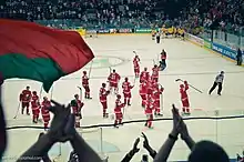 ИнфраструктураБыл разработан комплекс мероприятий по модернизации инфраструктуры Минска к Чемпионату мира по хоккею с шайбой 2014 года. Организация проживанияБолельщиков принимали отели города, хостелы и апартаменты (квартиры на сутки). В апреле из общежитий «Студенческой деревни» были выселены студенты, а в них расположилась «фан-деревня»[14][15]. В 2013 году в центре Минска открылся пятизвёздочный «Президент-отель». К началу чемпионата планировалось открыть ещё одиннадцать гостиниц. Во время проведения чемпионата мира по хоккею участников соревнований и гостей обслуживали 43 гостиницы, общая вместимость которых составляла более 9,5 тыс. мест[28]. Официальных участников чемпионата (команды, судьи, представители Международной федерации хоккея, журналисты) планировалось разместить в отелях «Минск», «Президент-Отель», «Европа», «Краун Плаза», «Виктория-1», «Виктория-2», «Виктория-Олимп», «Гарни», «Ренессанс», «Робинсон клуб», «Нарочанская», «Свислочь», «Беларусь»[1]. Транспортная инфраструктура и транспортное сообщение![]() Автобус в Минске В 2012 году были запущены еще три новые станции Минского метрополитена: «Грушевка», «Михалово» и «Петровщина». К 1 мая 2014 года планировалось открытие станции метро «Малиновка», но впоследствии срок открытия перенесли[29]. В преддверии чемпионата мира на всех станциях метро произведено устройство жёлтых ограничительных шуцлиний по краям платформ, переоформлены кассовые окна, подготовлены схемы линий метрополитена на английском языке, названия станций объявляются на белорусском и английском языках[30]. Для подвоза участников и гостей чемпионата к спорткомплексам «Минск-Арена» и «Чижовка-Арена» разработаны схемы 13 целевых маршрутов пассажирского транспорта. Кроме того, на автобусных маршрутах № 1 и № 100 начали работу новые автобусы МАЗ-215[31]. Завершён капитальный ремонт улицы Ташкентской и моста через Чижовское водохранилище, что расширило возможности маршрутного пассажирского транспорта, связывающего «Чижовка-Арену» с остальными районами. На время чемпионата мира по хоккею были заморожены тарифы на услуги обычных и маршрутных такси[32]. К чемпионату проведена реконструкция Национального аэропорта «Минск». В марте 2014 года были открыты модернизированные залы вылета и прилёта пассажиров[33]. Во время чемпионата курсировали автобусы повышенной комфортности МАЗ 107569 по маршруту автовокзал «Центральный» — Национальный аэропорт «Минск»[34]. БойкотНекоторые европейские политики призывали перенести место проведения чемпионата или бойкотировать его по политическим мотивам[35]. 29 марта 2012 года Европейский парламент принял резолюцию с призывом лишить страну права на проведение чемпионата[36]. Итоги чемпионата в оценке специалистов, СМИ, участников, зрителей![]() Белоруссия — Швеция Представители команд-участниц, руководство Международной федерации хоккея, высокие гости, а также болельщики отметили высокий уровень проведения чемпионата мира по хоккею в Минске. Премьер-министр России Дмитрий Медведев заявил, что этот чемпионат мира был блестяще организован и проведен[37]. Игры чемпионата мира транслировались на 120 стран мира, матчи в сумме посмотрели более 1 миллиарда зрителей. Более 80 тысяч иностранцев из 46 стран мира посетили чемпионат, в том числе более 31 тысячи зарубежных граждан из стран, с котор