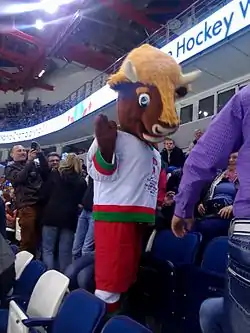 Официальным талисманом чемпионата мира по хоккею с шайбой 2014 стал зубр по имени Волат[7] (в переводе с белорусского языка — «богатырь»), играющий в хоккей (автор — дизайнер Виталий Ортюх).