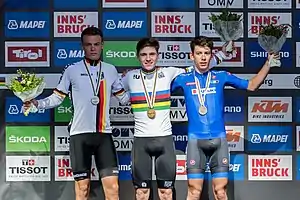 | Слева направо Мариус Майрхофер (2-й), Ремко Эвенепул (1-й) и Алессандро Фанчеллу (3-й) | |||