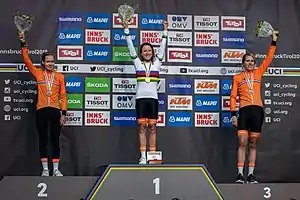 | Слева направо Анна Ван дер Брегген (2-й), Аннемик Ван Флёйтен (1-й) и Эллен Ван Дейк (3-й) | |||