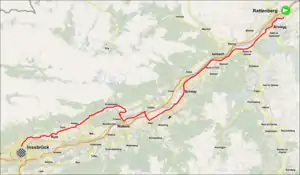 Протяженностью маршрута составила 52,5 километра. Старт располагался в Раттенберге. Первые 30 километров проходили по равнине вдоль долины Верхнего Инна в земли Тироль, что позволяло развивать большие скорости. Затем дистанция проходила по всему району Инсбрука в городах Кользас и Вер где пересекали реку Инн. Далее следовали в Фритценс, где предстояло преодолеть основной подъём маршрута протяжённостью 5 километров со средним градиентом 7% и максимальными до 14%, вертикальный подъём составил 350 метров. Его вершина располагалась на равнине в Гнаденвальде. После этого следовал 9 километровый спуск через Абзам, Таур и Рум в район Брюке-Хёттингер-Аю до Святого Николауса, где они пересекали мост Кеттенбрюке. Финишный отрезок проходил по широкому бульвару Rennweg до финиша перед Императорским дворцом Хофбург.