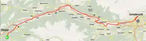 Протяженность маршрута составила 54,5 километра. Старт располагался в центре парка приключений «Area 47» в городе Эцталь-Банхоф, затем дистанция проходила через долину Верхнего Инн в Тирольском регионе через Тельфс и Фёльс в Инсбрук. Далее вдоль аэропорта Инсбрука, прежде чем финишировать напротив дворца Хофбурга.
