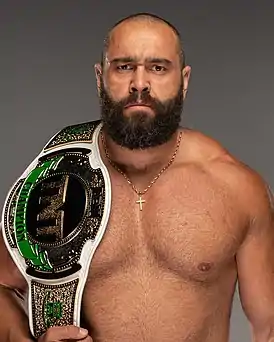![]() Дарби Аллин, самый длительный чемпион. | ![]() Действующий, двукратный чемпион, Сэмми Гевара |