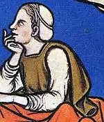 Тюдоровский чепец (гейбл) | Данный вид головного убора представлял собой довольно сложную конструкцию из каркаса, обтянутого тканью, надетого поверх обычного белого чепца. Волосы чуть выше лба, выглядывающие из-под убора, скрывались жесткой лентой. Часто передний край гейбла украшался вышивкой и драгоценными камнями либо дополнялся каймой контрастного оттенка. Сзади волосы дамы скрывала тёмная вуаль. |