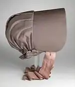 Капор (боннет) | Женский головной убор, популярный в течение большей части XIX века. У капора высокая шляпная тулья (для убранных на затылок волос) и обрамляющие лицо широкие жёсткие поля, сужающиеся к затылку. Капор удерживался на голове мантоньерками — широкими лентами, завязывавшимися под подбородком бантом. |
