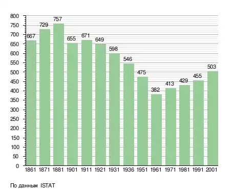 Население составляет 502 человека (2008 г.), плотность населения составляет 100 чел./км². Занимает площадь 5 км². Почтовый индекс — 22020. Телефонный код — 031.