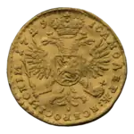 - Золотой червонец Петра I. coins.kiev.ua. Дата обращения: 25 октября 2018. Архивировано 8 июля 2018 года.