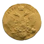 - Золотые монеты Екатерины II. coins.kiev.ua. Дата обращения: 25 октября 2018. Архивировано 7 марта 2018 года.