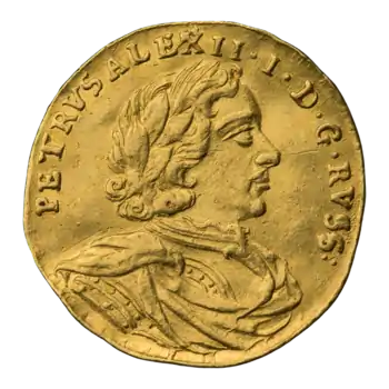 - Золотые монеты Петра I. Монеты России. Дата обращения: 25 октября 2018. Архивировано 23 марта 2018 года.