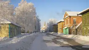 ![]() Улица Первомайская. Вид на Троицкую церковь (февраль 2010) | |