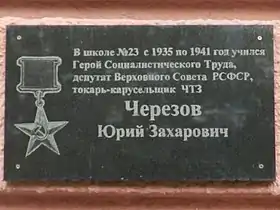 - Мемориальная доска Черезову Юрию Захаровичу (недоступная ссылка). Сайт архиват.рф. Дата обращения: 4 июля 2015. Архивировано 10 августа 2016 года.