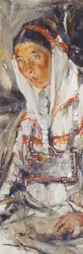 Этюд «Сваха» из коллекции Чувашского музея изобразительных искусств (1908, холст, масло, 65 x 78 см, Ж-57, поступил в 1940 от П. А. Радимова[34][35] как этюд к «Черемисской свадьбе»[40]) запечатлел образ женщины, принадлежащей к «средненизовой этнографической группе чувашей, а точнее — её северо-западной подгруппы, проживающей близ Чебоксар»[29][39][41]. Иванов-Орков писал, что прямоугольное украшение с монетами и раковинами на груди и цветные бусы характерны для девушек, а сваха должна быть замужней женщиной, поэтому принятое название ошибочно[29][41]. Исследователь писал, что впечатление зрелой женщины, которое производит этот этюд обманчиво, это вполне может быть девушка, а грубость образа объясняется манерой живописи автора и тяжестью повседневной жизни крестьян[41]. В подтверждение своей версии он ссылался на фотографии начала XX века, сделанные этнографом Гурием Комиссаровым[29]. Другую точку зрения высказывал художник Никита Сверчков. Научный сотрудник Чувашского государственного художественного музея Л. Г. Макарова писала осторожно, что костюм «взят обобщённо, поэтому трудно точно сказать, марийский он или чувашский»[40].