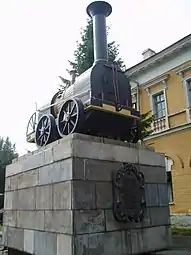 - Паровоз Черепановых установлен на постамент в подмосковном Ногинске на улице Ильича.