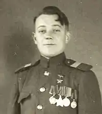 - Медаль «Золотая Звезда» Героя Советского Союза (31.05.1945)[2][3];