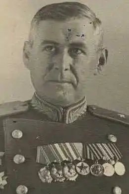 В период 18-22 августа 19443 года при прорыве переднего края вражеской обороны и нанесении противнику тяжелых потерь в людях и технике, в результате которого были улучшены позиции наступающих частей армии, находился в войсках, руководя и оказывая непосредственную помощь руководителям операций при ведении боев. Своим пребыванием в войсках вдохновлял бойцов и офицеров на выполнение боевых задач.