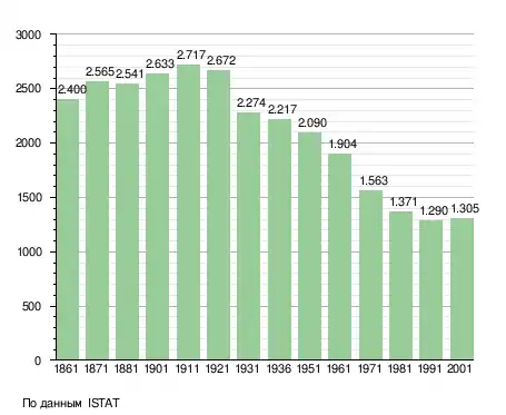 Население составляет 1280 человек (2008 г.), плотность населения составляет 40 чел./км². Занимает площадь 32 км². Почтовый индекс — 18034. Телефонный код — 0184.