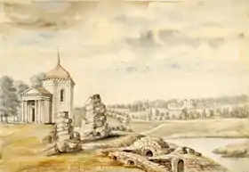 ![]() Акварель Наполеона Орды 1875-1877 гг. Руины Черленковского замка и часовня. | |