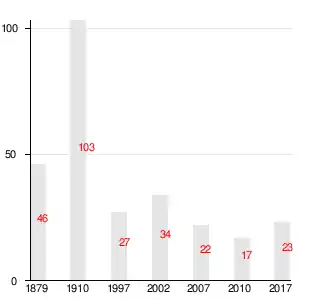 Крестьянских дворов — 4. Строений — 6, в том числе жилых — 4. Число жителей по семейным спискам 1879 г.: 7 м. п., 11 ж. п.[2]