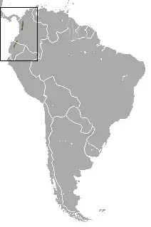 Этот вид встречается в горных лесах двух разных районов Анд: в западной Колумбии (на высоте от 1800 до 3800 м) и на севере центрального Эквадора (на высоте 1100—2980 м). Зафиксированы находки и в природоохраняемых зонах: в Национальном парке Татама (Колумбия) и в экологических заповедниках Антисана и Котакачи-Кояпас (Эквадор)[4].
