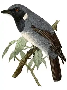 Черногорлая пегая мухоловка[1] (лат. Poecilodryas albonotata) — вид птиц из семейства австралийских зарянок. Обитают на острове Новая Гвинея в горных субтропических и тропических лесах на высотах 1150—2750 м над уровнем моря (в основном на центральных нагорьях острова)[2].