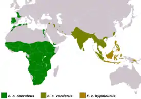 Обитает на открытых ландшафтах, саваннах и редколесьях Африки, Индии и Юго-Восточной Азии, а также на юге Испании. Ведет оседлый образ жизни.