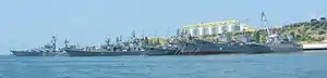 Флагман — гвардейский ракетный ордена Нахимова крейсер «Москва».