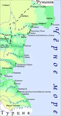 - Черное море и Черноморское побережье Болгарии (недоступная ссылка). О Болгарии по-русски. Дата обращения: 10 ноября 2020. Архивировано 15 августа 2012 года.