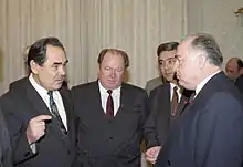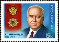 Ви́ктор Степа́нович Черномы́рдин (9 апреля 1938, село Чёрный Отрог, Гавриловский район, Оренбургская область, РСФСР, СССР — 3 ноября 2010, Москва, Россия[6]) — советский и российский государственный деятель, председатель Совета министров Российской Федерации (1992—1993), председатель Правительства Российской Федерации (1993—1998), исполняющий обязанности президента Российской Федерации (5—6 ноября 1996), посол России на Украине (2001—2009). С 11 июня 2009 года до конца жизни — советник президента Российской Федерации, специальный представитель президента Российской Федерации по вопросам экономического сотрудничества с государствами-участниками СНГ[7]. Основатель и лидер партии «Наш дом — Россия».