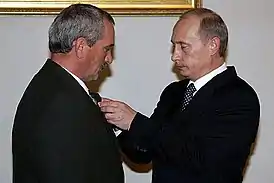 - В 2005 году почетным званием Героя Российской Федерации став первым героем удостоенным этого звания за сельский труд[3][5].