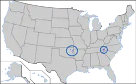 | Регионы | Оклахома и резервации чероки в Северной Каролине |
