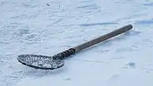 Предназначен для извлечения мелкого льда или снега, наносимого ветром, или льда, который затягивает поверхность воды в лунке во время зимней рыбалки.