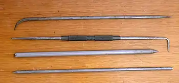 Чертилка — ручной инструмент, служит для нанесения линий (рисок) на размечаемую поверхность с помощью линейки, угольника или шаблона. Изготовляют чертилки из инструментальной углеродистой стали У10 или У12. Широко применяют три вида чертилок: круглую, с отогнутым на 90 градусов концом и со вставной иглой. Круглая чертилка представляет собой стальной стержень длиной 100—200 мм и диаметром 4—5 мм, один конец закалён на длину 20—30 мм и заострён под углом 15 градусов, а с другой согнут в кольцо диаметром 25—30 мм.