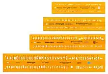 - ISO 3098-1:2015 Technical product documentation -- Lettering -- Part 1: General requirements (англ.). ISO. — «...application of lettering using the following techniques: free-hand lettering (by means of an underlaid "grid"); templates and manual lettering instruments; dry transfer systems; numerically controlled lettering and draughting systems». Дата обращения: 5 января 2019.