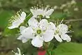 Цветки собраны в соцветия в виде кисти 3—9. Длина кисти может достигать 8 см. Главная ось, цветоножка, гипантий и чашелистики густо покрыты длинными белыми, направленными кверху, трихомами. Прицветнички неопадающие, нижние, сидячие, имеют зелёный цвет, форму от яйцевидной до обратнояйцевидной, размер 5 мм на 3 мм, покрыты разбросанными белыми волосками, у основания густо. Края зубчатые, иногда только вверху, зубцы нередко с узкими эллиптическими коричневыми крупными железками на верхушках. Белые или желтовато-белые лепестки яйцевидной формы, с ноготком, размером 6—8 мм на 3—5 мм. Чашелистики овально-треугольной формы, с железисто-зубчатыми краями. Размер цветоножки до 2 см[2].