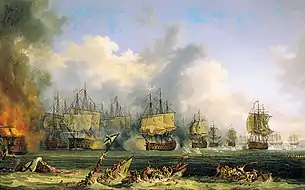 | «Начало боя в Хиосском проливе 24 июня 1770 года» | Камин с зеркалом ↓ Арсенальная галерея |