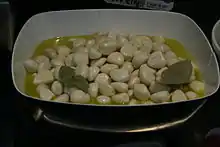 Вверху: «Чёрный чеснок» — популярное кушанье в Японии и Корее. Внизу: чеснок в оливковом масле — блюдо испанской кухни. |