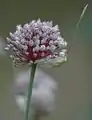 Соцветие — простой шаровидный зонтик, состоящий из стерильных цветков, воздушных размножающихся луковичек-бульбочек и плотного покрывала (обёртки). Цветки на длинных цветоножках, с простым (то есть без дифференциации на чашечку и венчик), венчиковидным околоцветником, состоящим из шести лепестков[11]. Лепестки околоцветника белые или бледно-лиловые, с одной жилкой, гладкие, имеют длину около 3 мм. Тычинок шесть[2][14].