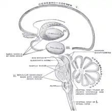 Корональный разрез среднего мозга.