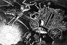 Английский инженер Уильям Крэкфорд, фанат рекордов скорости, продает свою душу алхимику Алкофрисбасу (на самом деле — Сатане) в обмен на волшебные таблетки, которые позволят ему путешествовать вокруг света. После поездки с его камердинером Джоном на апокалиптической лошади, запряженной в астральную карету, Крэкфорд, попадает прямиком в ад на вертел.