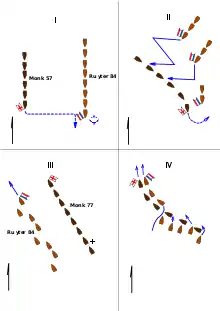 Походный строй был выработан с таким расчетом, чтобы можно было, как только покажется неприятель, немедленно перестроиться в боевой порядок в бейдевинд.